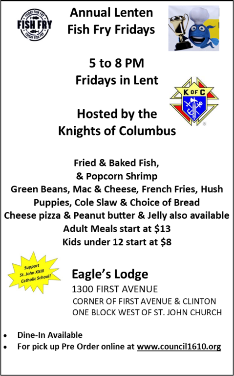 - Mar 13 2026 5:00 pm - K of C Fish Fry